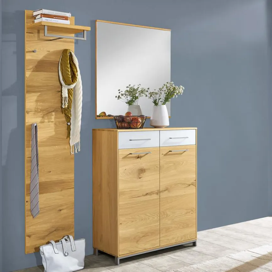 - Garderobe aus Garderobenpaneel, Schuhschrank und Spiegel