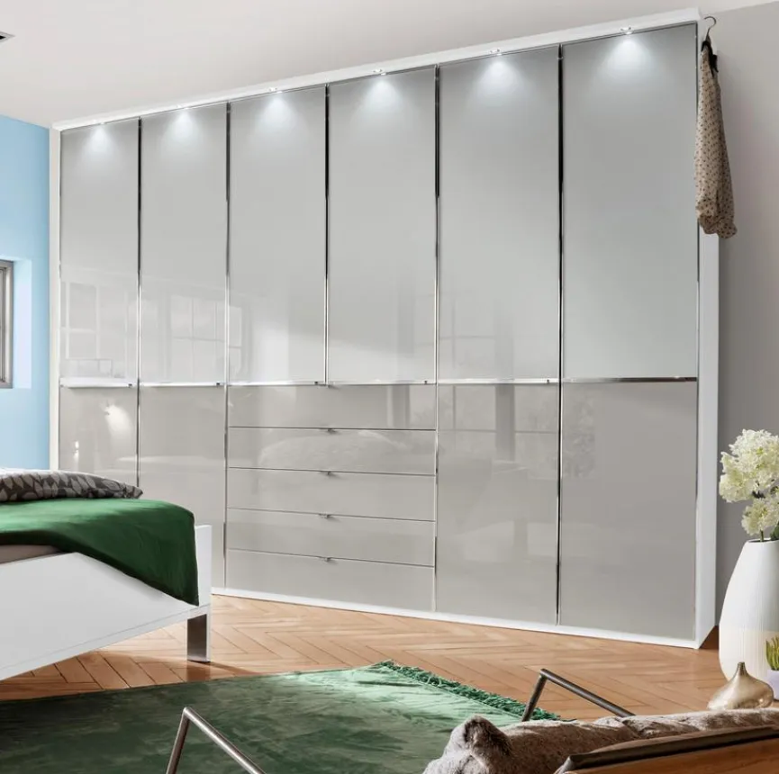 Mit der Kranzleiste Shanghai 2 wird jeder Drehtüren- und Funktionsschrank von Wiemann in das rechte Licht gerückt. Neben einem erstklassigen Design setzten die sechs Leuchten den mordernen Stil des Schrankes akkurat in Szene. So erstrahlt das heimische Schlafgemach in einer klassischen Optik. Die Wiemann Kranzleiste Shanghai 2 ist optional in verschiedenen Längen erhältlich.
