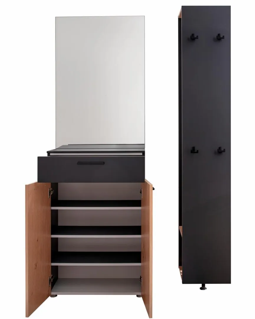 - Garderobe aus Kommode, Spiegel und Garderobenpaneel