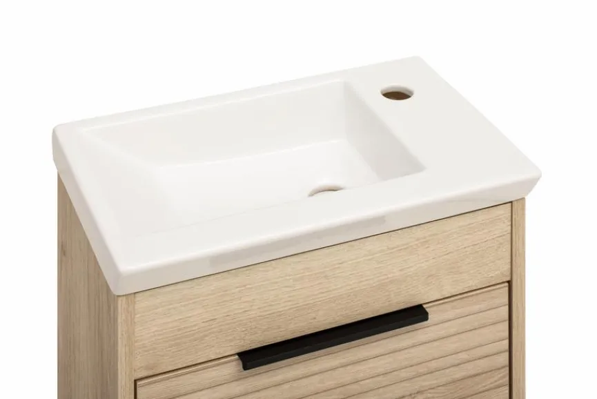 - Inkl. Keramik-Waschbecken in Weiß glanz ohne Überlauf (nur mit nicht verschließbaren Ablaufventilen kombinierbar)