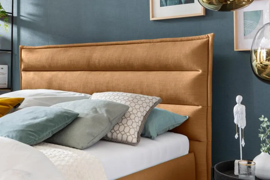 Bettkästen werden mit komplett gelochter Bodenplatte – zur besseren Bettkastenbelüftung – gefertigt; durch den stoffbezogenen Sockel wird der Stauraum im Bettkasten größer
