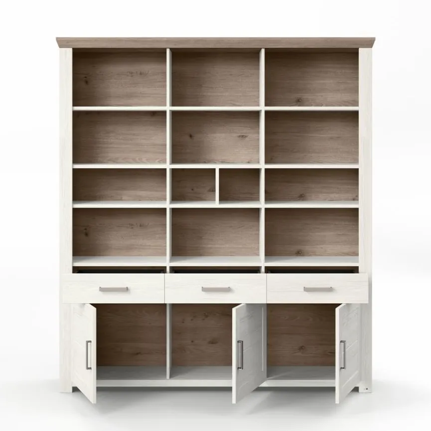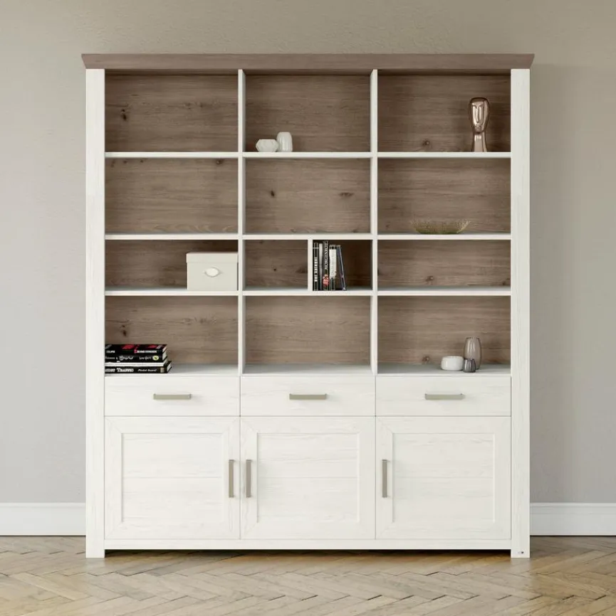 Das set one by Musterring Bücherregal York setzt sich mit charmanten Landhausakzenten in Szene. Ein Kranzprofil verleiht dem Möbel eine schöne klassische Note. Dank der vielen offenen Fächer bietet Ihnen das Bücherregal York zudem jede Menge Platz für Ihre Lektüre, für allerlei Dekoobjekte und mehr.