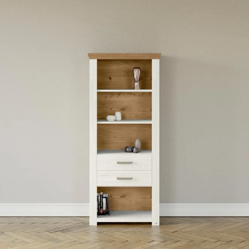 Das elegante Highboard York stellt die perfekte Symbiose aus Landhausstil und modernem Design dar. So lässt es sich hervorragend mit den verschiedensten Einrichtungsstilen individuell in Szene setzen. Alles Dekorative, was Sie zeigen möchten, findet von nun an auf verschiedenen Ebenen einen adäquaten Platz. Für Krimskrams bietet das Highboard York zusätzlich zwei praktische Schubladen.