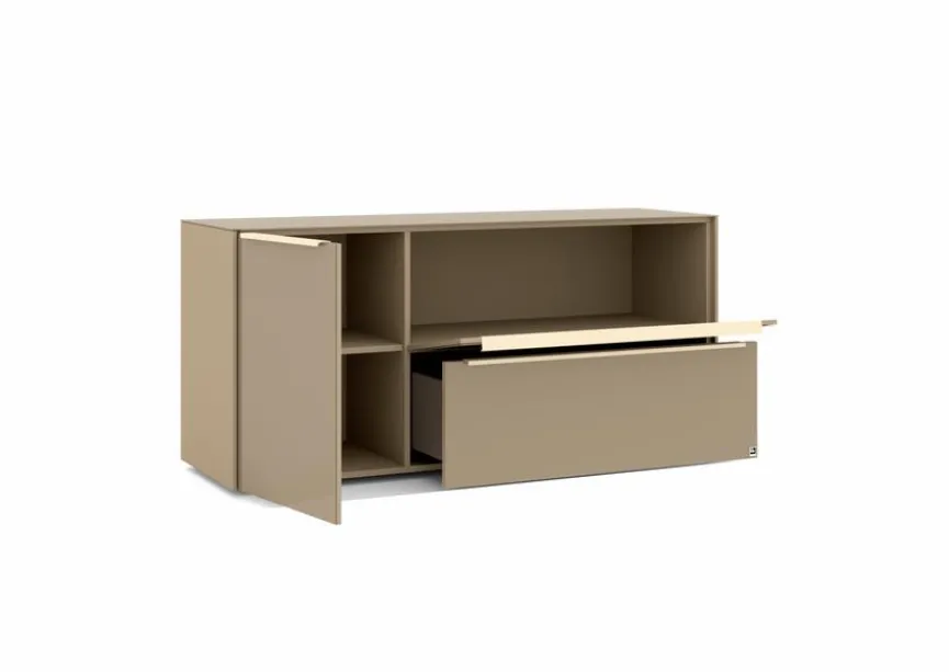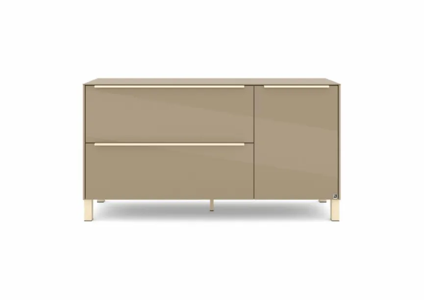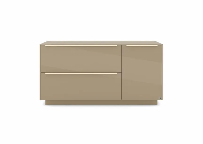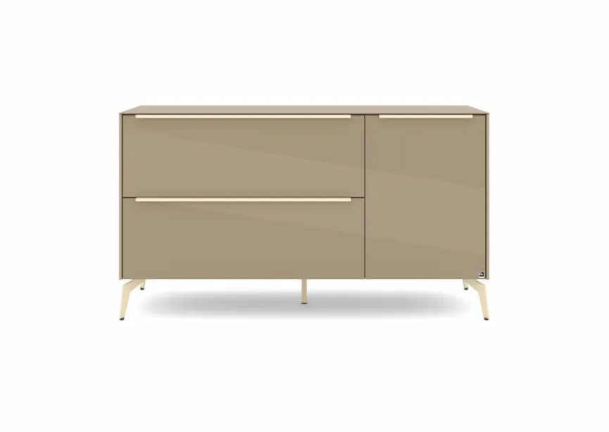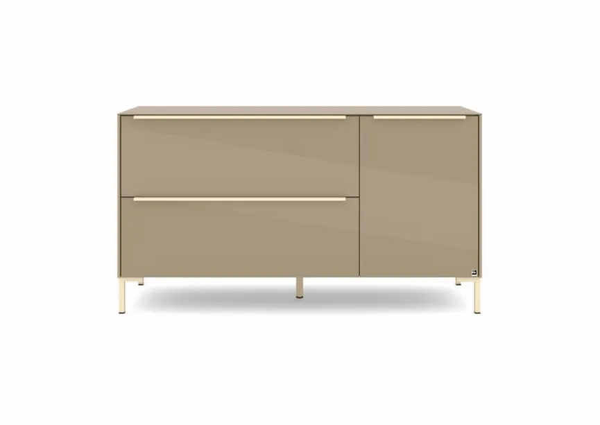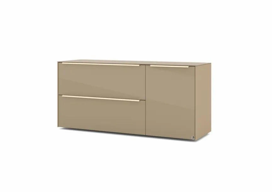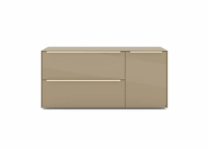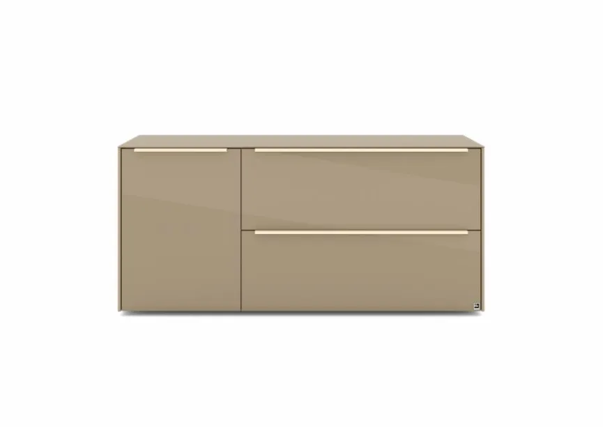 - Mit 1 Tür, 1 Klappe und 1 Schubkasten, Griffe aus Metall mit Lack in kaschmir