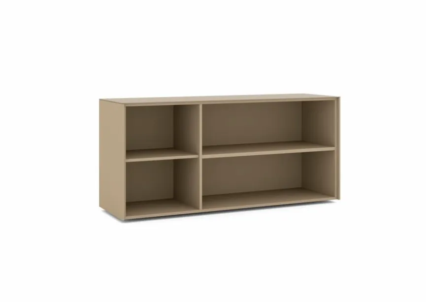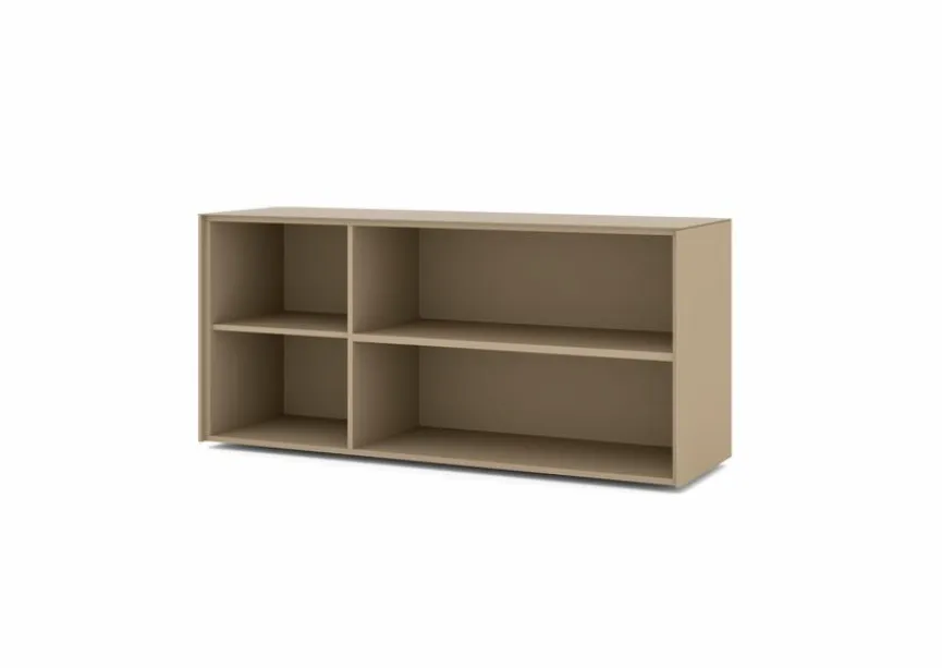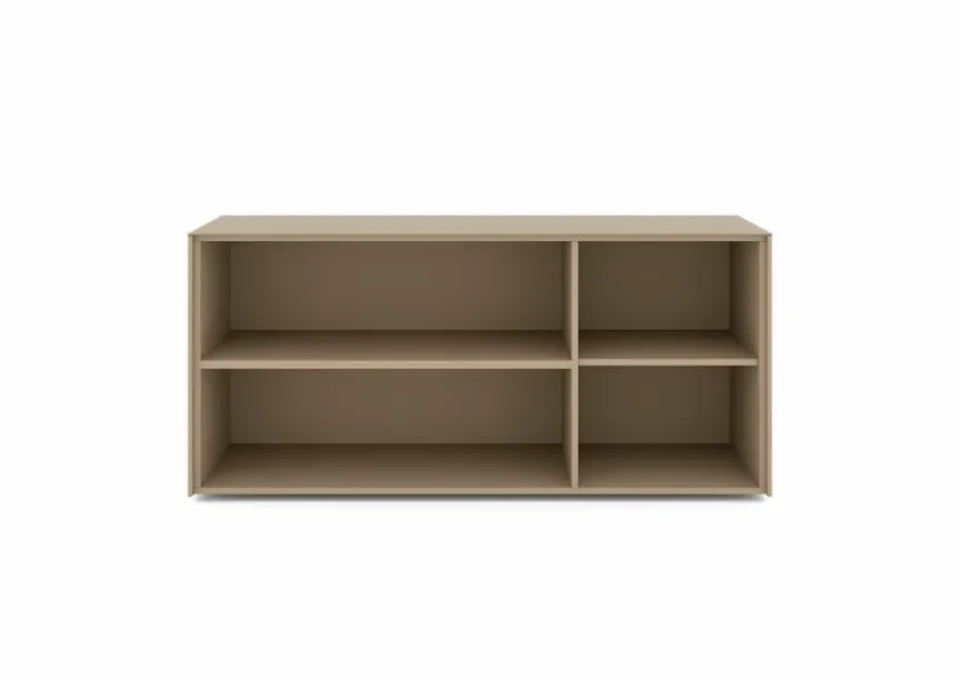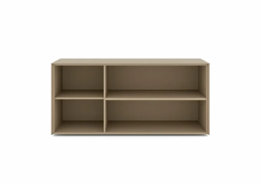 - Aus Holzwerkstoff (Spanplatte) mit kratzfester Melaminharzfolie in taupe