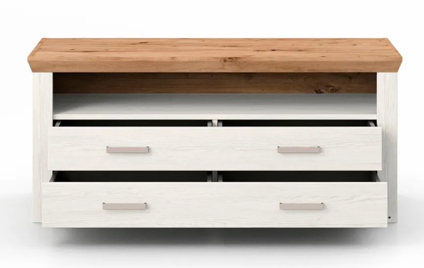 Das attraktive Lowboard York begeistert als charmanter Blickfang. Nutzen Sie das hübsche Sideboard zum Beispiel als Highlight in Ihrem Ess- oder Wohnzimmer. So können Sie mit dem praktischen Lowboard York Accessoires griffbereit ablegen und aufbewahren sowie auf der Oberseite schöne Dekorationen wie Bilderrahmen oder Vasen stilvoll präsentieren.
