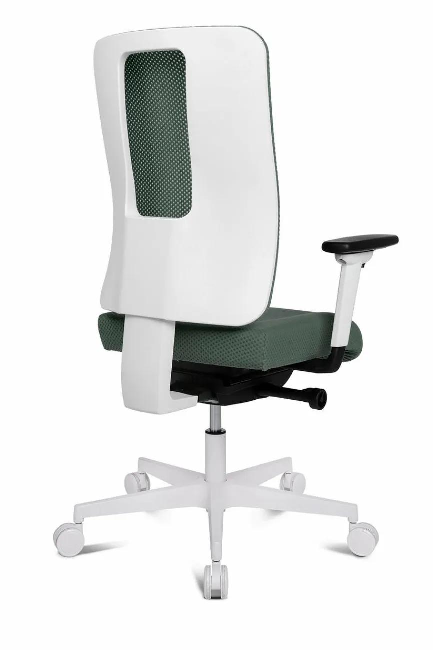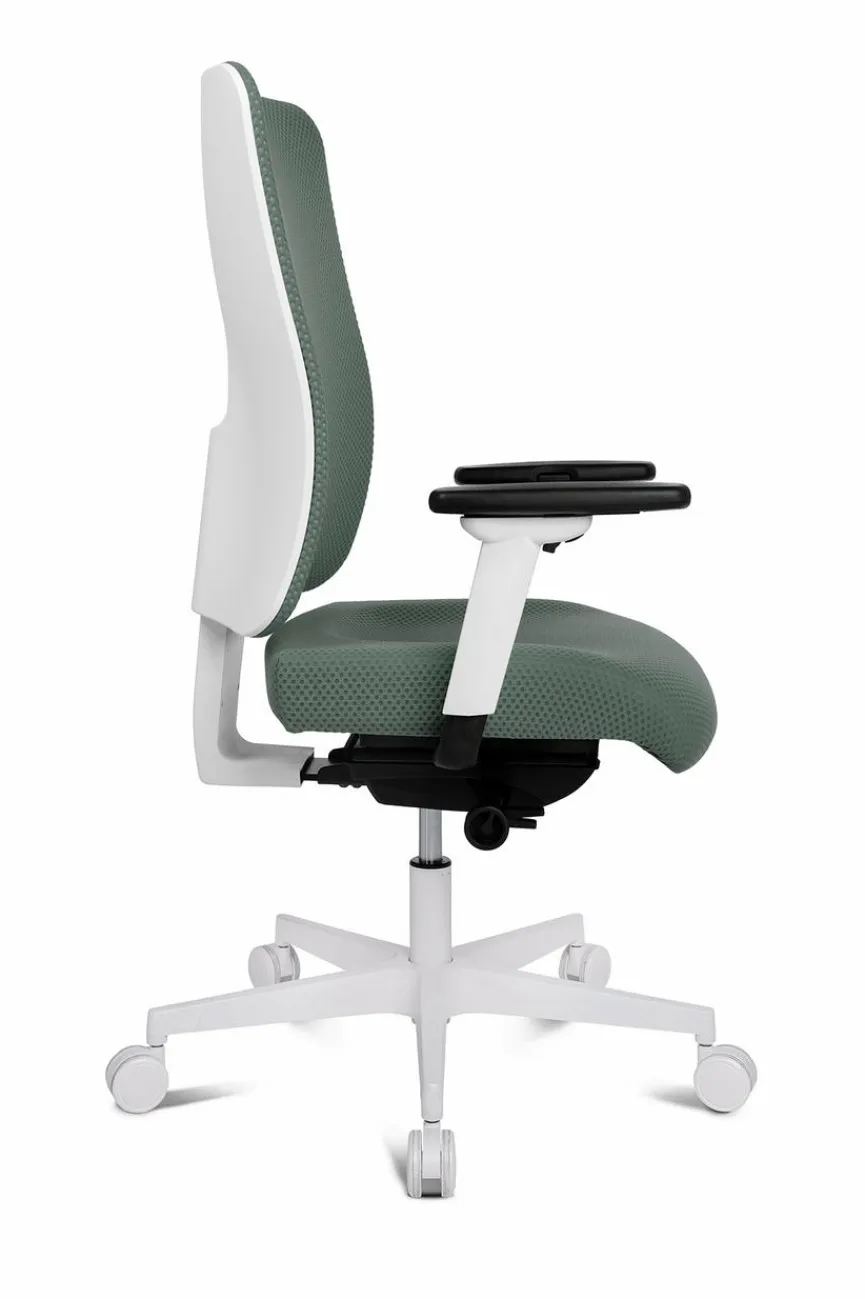 - Synchronmechanik, Sitzfläche mit abgerundeter Sitzvorderkante, integrierter Beckenstütze und Sitness-Gelenk für eine dreidimensionale Beweglichkeit der Sitzfläche