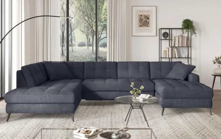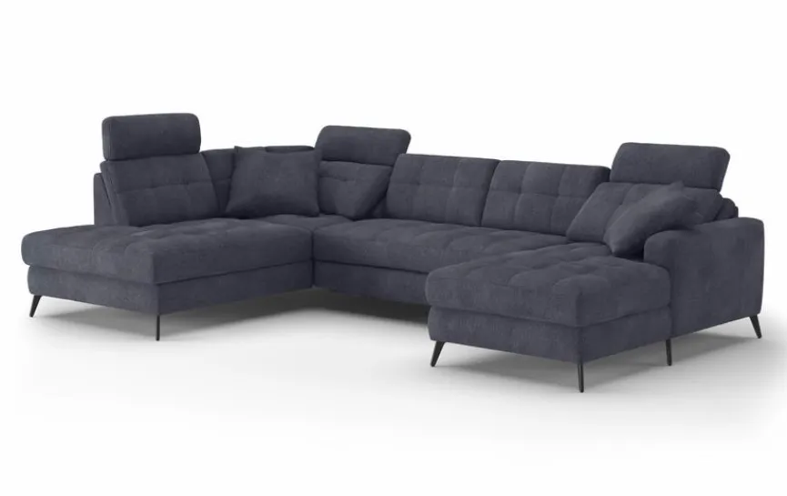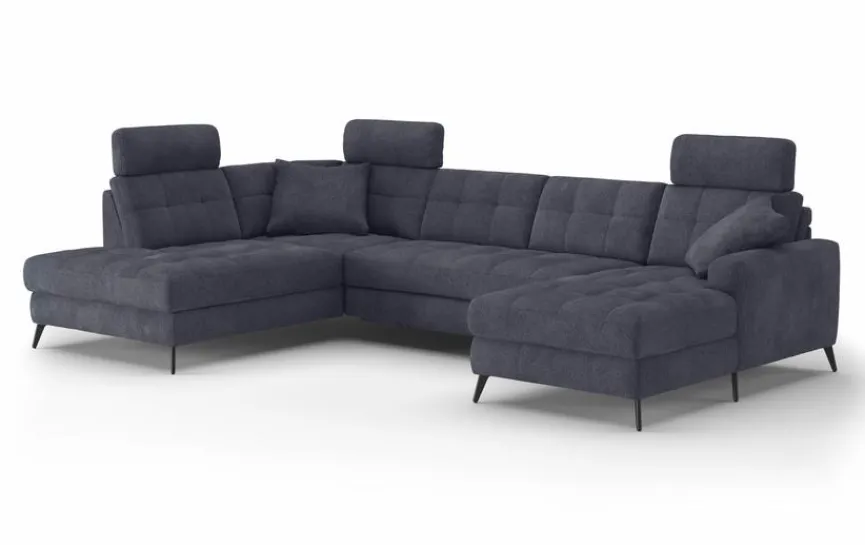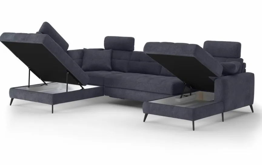 - Inkl. Schlaffunktion durch Frontauszug im 2-Sitzer, Bettkasten im Longchair, Stauraum in der Ottomane, 1 Relaxrücken im Longchair und der Ottomane, 1 Sitztiefenverstellung im äußeren SItz der Ottomane