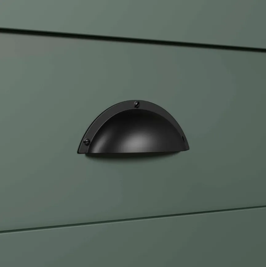 - Korpus aus Holzwerkstoff (Spanplatte) mit hochwertiger Dekorfolie in Tannengrün, Front aus Holzwerkstoff (MDF) mit hochwertiger Dekorfolie in Tannengrün