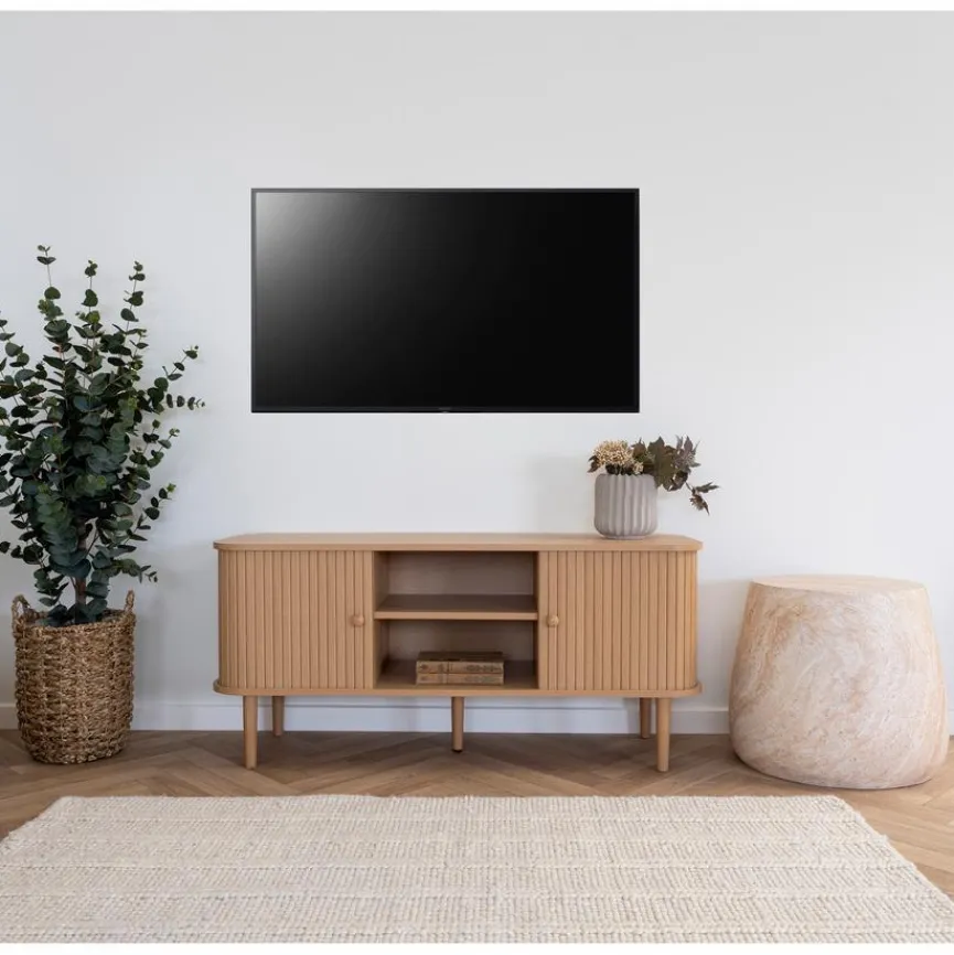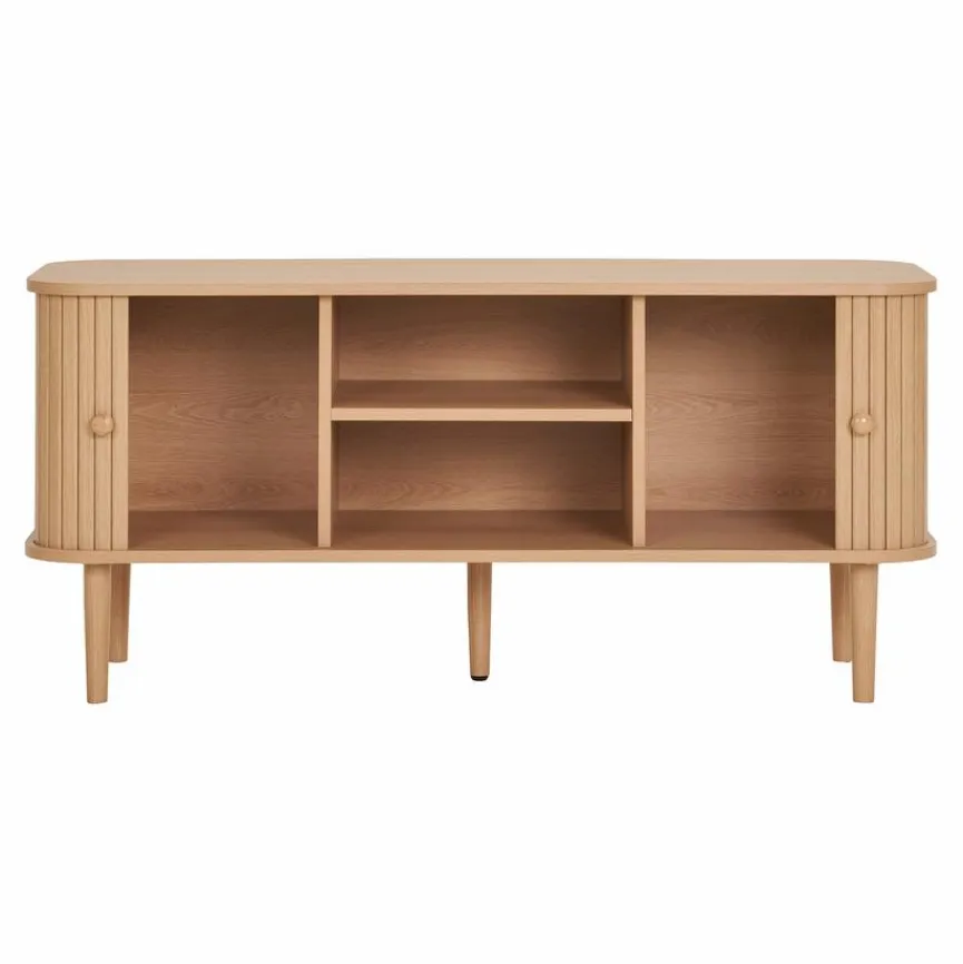 Das TV-Lowboard Nikko ergänzt Ihre heimische Wohnzimmereinrichtung auf charmante Art und Weise. Dank der Dekorfolie in Kiefer lässt dieser TV-Unterschrank in Ihrem Zuhause eine gemütliche und zugleich geschmackvolle Stimmung entstehen. Auch die fünf filigranen Beine verleihen dem hochwertig verarbeiteten TV-Lowboard Nikko eine überaus ansprechende Note.