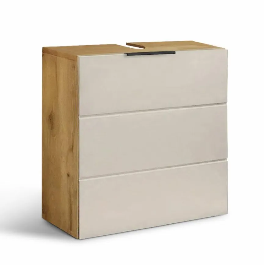 Kompakt, aber geräumig gebaut, ist der Unterschrank Kreta ein unverzichtbares Möbelstück, um auch in kleinen Wohnungen Ordnung zu schaffen. Verstauen Sie in den drei großen Schubladen Wäsche, Spiele oder Saisonartikel wie warme Bettwäsche. Dank der praktischen Aussparung lässt sich der Unterschrank Kreta problemlos unter einem Waschbecken platzieren.