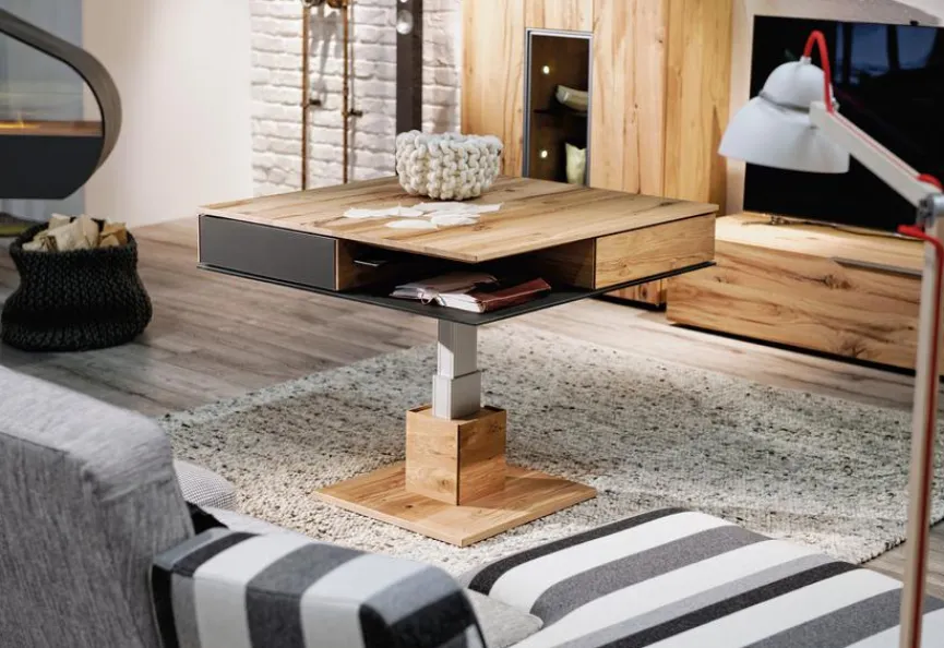 Der Couchtisch V-Alpin AC2L99H von Voglauer bringt eine urige Gemütlichkeit in jedes Zuhause. Der quadratische Wohnzimmertisch ist eine gelungene Kombination aus ländlichem Charme und moderner Extravaganz. Das Altholz macht jedes Exemplar zu einem Unikat mit unterschiedlichen Maserungen. Sie können den Voglauer Couchtisch V-Alpin AC2L99H auch ganz einfach in seiner Höhe verstellen und zum Esstisch umwandeln.