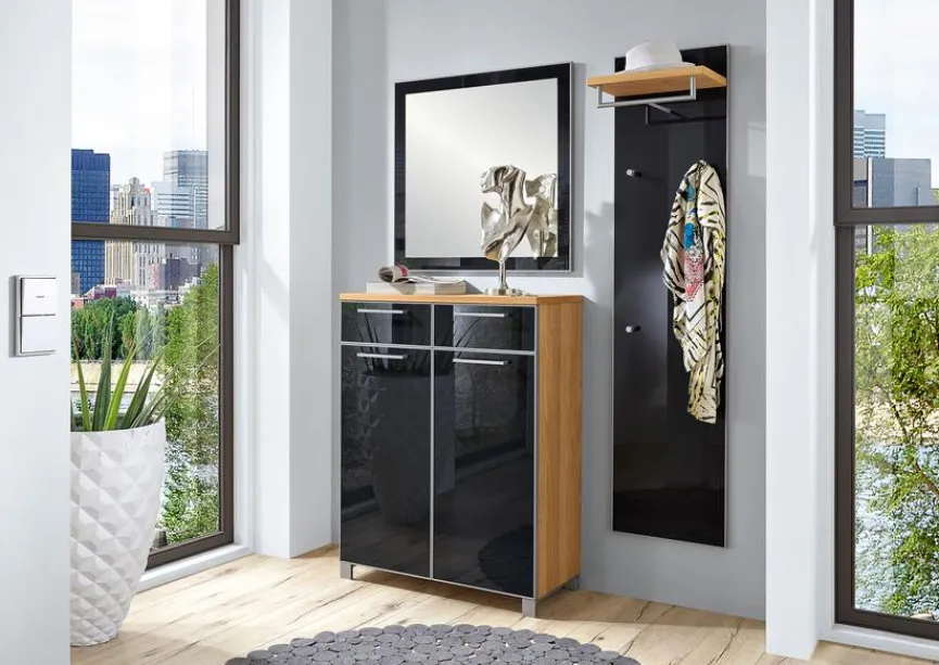 - Garderobe aus Schuhschrank, Spiegel und Garderobenpaneel
