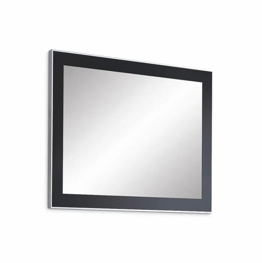 - Front aus Glas in Anthrazit auf Spanplattenfüllung mit umlaufenden alufarbigen Rahmen