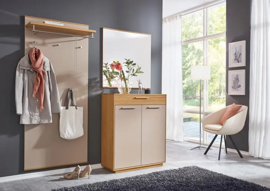 Die Schuhkommode Loveno von Voss Möbel passt dank ihrer geringen Tiefe selbst in schmale Flure und Ecken. Mit drei verstellbaren Holzeinlegeböden bietet der Schuhschrank viel übersichtlichen Stauraum. Währenddessen finden im breiten Schubkasten der Voss Möbel Schuhkommode Loveno Schals, Mützen und Handschuhe ein neues Zuhause.