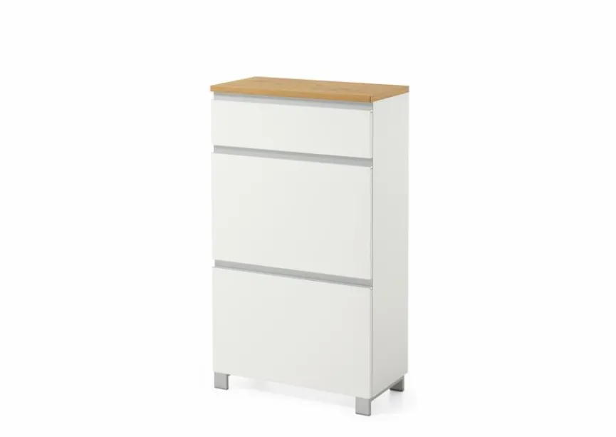 Der Schuhschrank Salea aus dem Hause Voss Möbel zeichnet sich durch sein modernes und stilvolles Design aus. Er stellt mit einer Schublade und zwei Klappen mit Schuhkörben sehr praktischen Stauraum zur Verfügung. Für bis zu zwölf Paar Schuhe bietet der Schuhschrank Salea des Herstellers Voss Möbel auf diese Weise mühelos Platz.