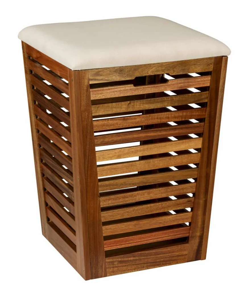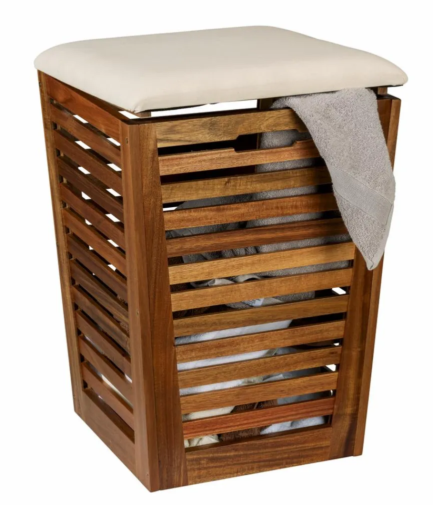 Setzen Sie mit der Wäschetruhe Fondi aus dem Hause WENKO ein raffiniertes Stil-Statement und profitieren Sie von edlem Design und hoher Funktionalität. Dieser aparte Wäschekorb ist in klassischer, konischer Form gefertigt und strahlt durch seine hochwertige Holzverarbeitung optisch Wärme aus. Egal, ob sie im Schlaf- oder Wohnzimmer aufgestellt wird, die Wäschetruhe Fondi fasst zahlreiche Textilien und schafft mit ihrem weichen Polster-Deckel außerdem eine fantastische Sitzgelegenheit.