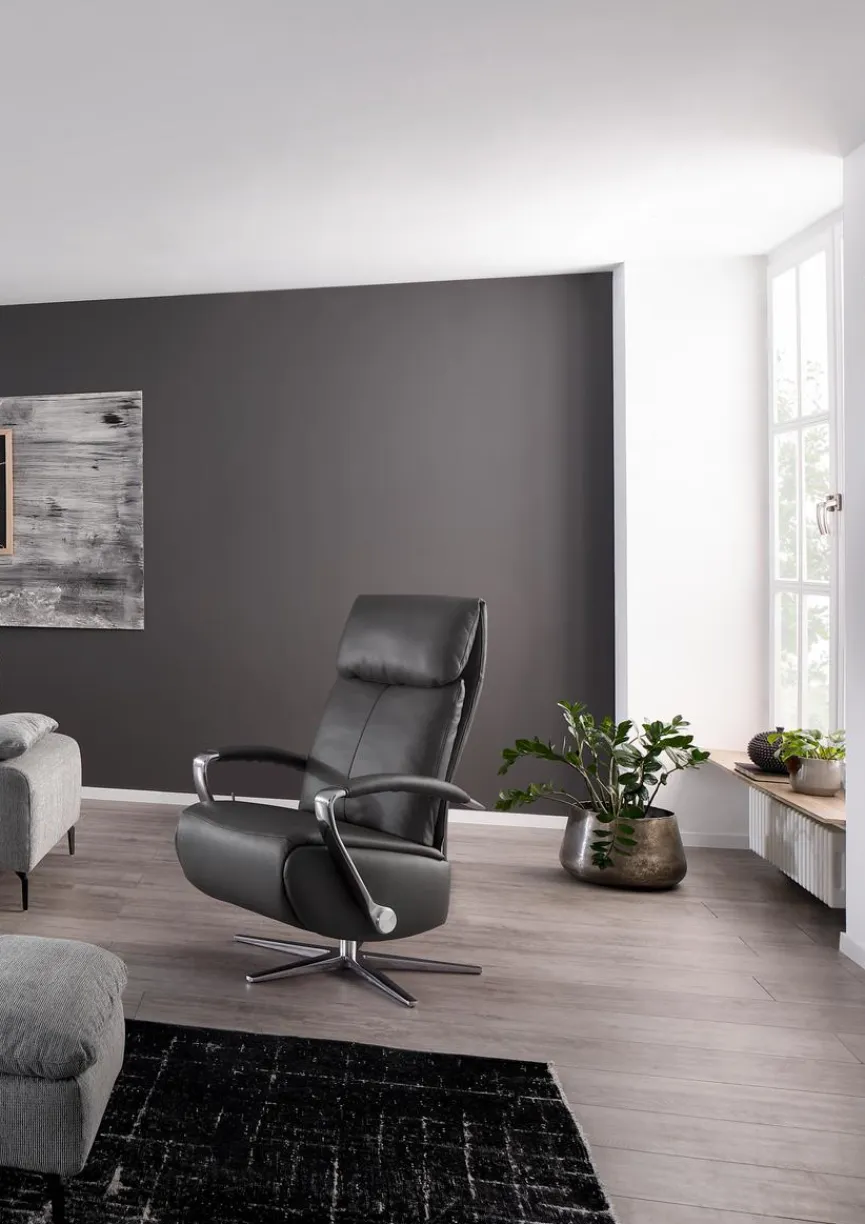 - Bezug aus Leder (Z73) in graphite (95), 5-Sternfuß (FU1) aus Metall in chrom glänzend (M20)