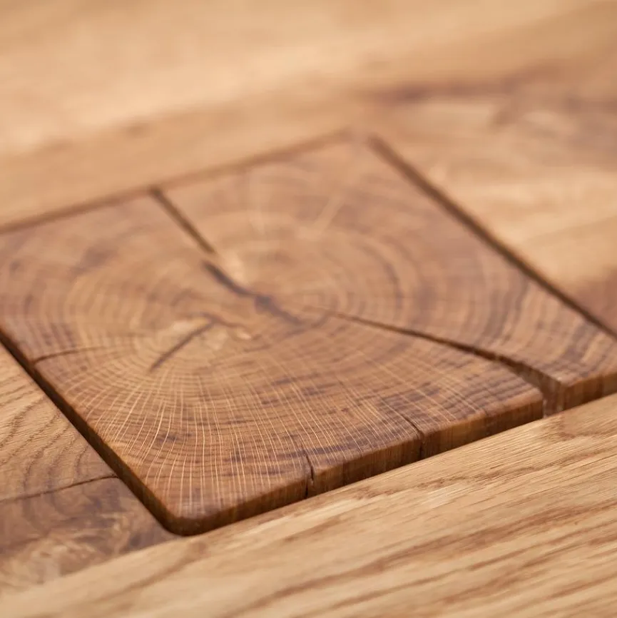 Für Massivholz – auch Vollholz – werden Querschnitte aus einem Baumstamm herausgearbeitet und durch Bohren, Fräsen oder Hobeln weiterverarbeitet. Das Material ist ein echtes Naturprodukt, das in seiner Struktur und Farbe einzigartig ist.