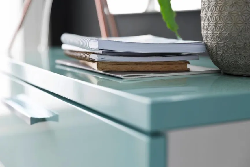 - Absetzung aus Holzwerkstoff (Spanplatte) mit Hochglanzlack in mint