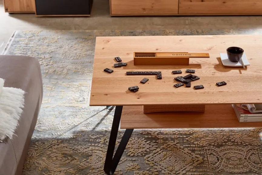 Der Couchtisch WM 2140 von Wöstmann ist ein echtes Lieblingsstück für Ihr Zuhause und bietet auf zwei Ebenen reichlich Ablagefläche. Seine Kombination aus kühlem Metall und warmem Holz macht den Wohnzimmertisch zu einem Möbelstück, das stylisches Design mit heimeliger Ausstrahlung verbindet. Machen Sie den Couchtisch WM 2140 zu einem Blickfang, der Ihrem Wohnzimmer einen Hauch des Besonderen verleiht.