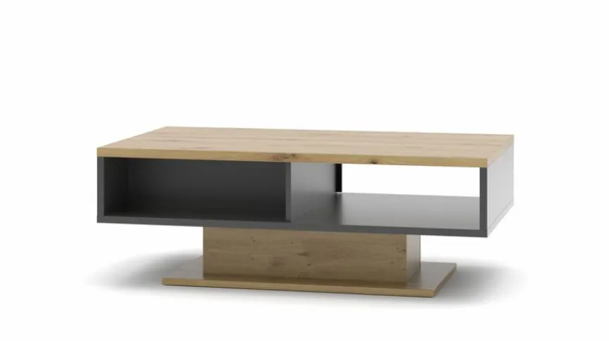 - Front aus Holzwerkstoff (MDF) in Graphit supermatt, Korpus aus Holzwerkstoff in Graphit bzw. Artisan Eiche, Absatz aus Holzwerkstoff (MDF) in Artisan Eiche Leistenoptik