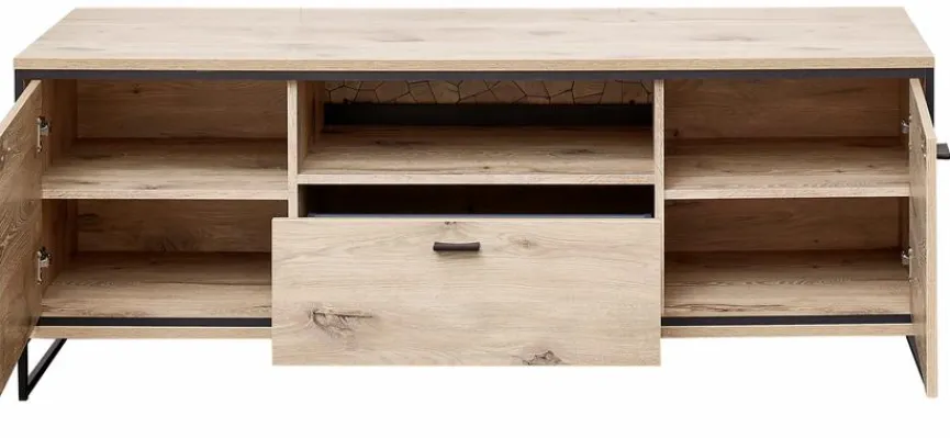 Das TV-Lowboard Ruben von der Marke Wohnconcept gefällt mit seinem Naturholzcharme, der bestimmt auch Ihr Zuhause bereichert. Abgerundet wird das Design des TV-Unterschranks von den Kontrasten aus Metall. Darüber hinaus bietet das TV-Lowboard Ruben in mehreren Fächern viel praktischen Stauraum und sorgt für Ordnung.