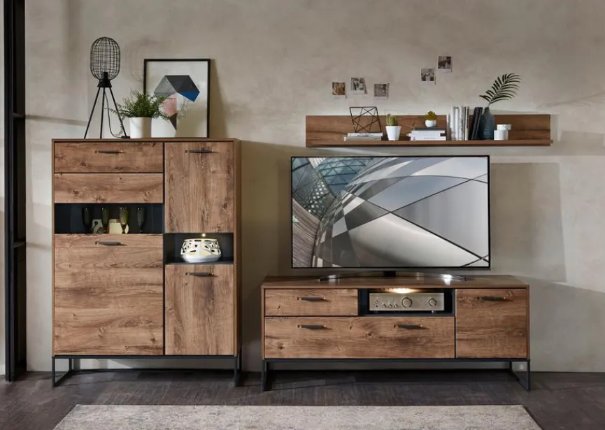 - Wohnwand aus Vitrine TV-Lowboard und Wandboard