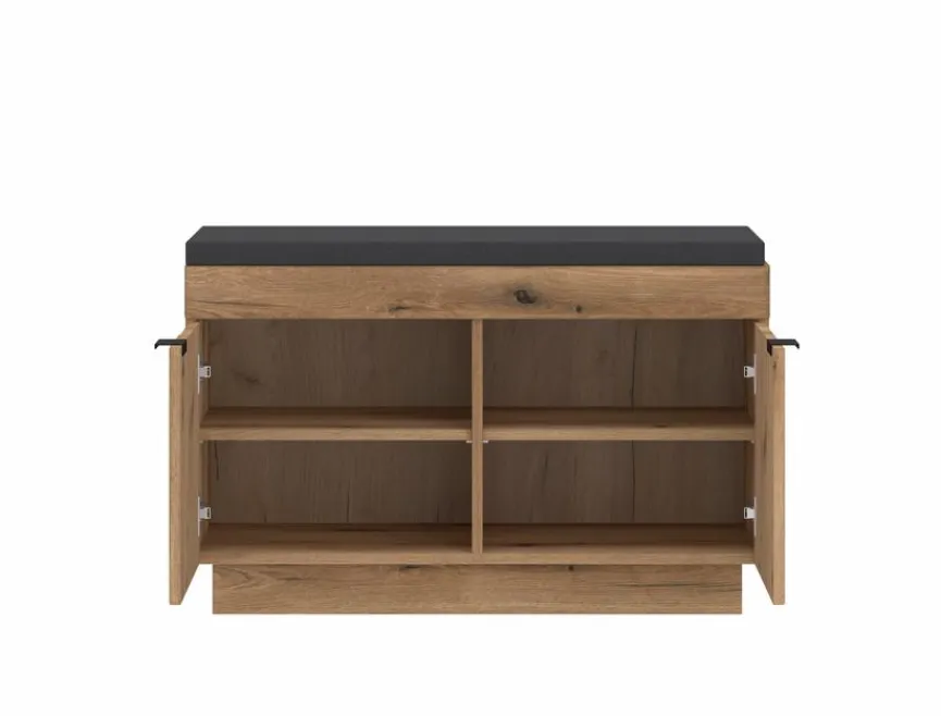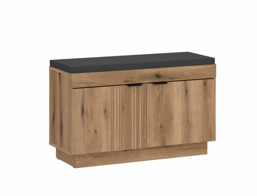 Die Garderobenbank Delamar von Wójcik vereint elegantes Design mit praktischer Funktionalität und eignet sich damit perfekt für den Flur, die Diele oder den Eingangsbereich. Ihr klares, modernes Erscheinungsbild als Umkleidebank fügt sich harmonisch in verschiedenste Wohnstile ein, während die gepolsterte Sitzfläche bequemen Komfort beim Schuhe anziehen bietet. Hinter den dezenten Fronten der Garderobenbank Delamar verbirgt sich großzügiger Stauraum für Schuhe, Taschen oder Accessoires.