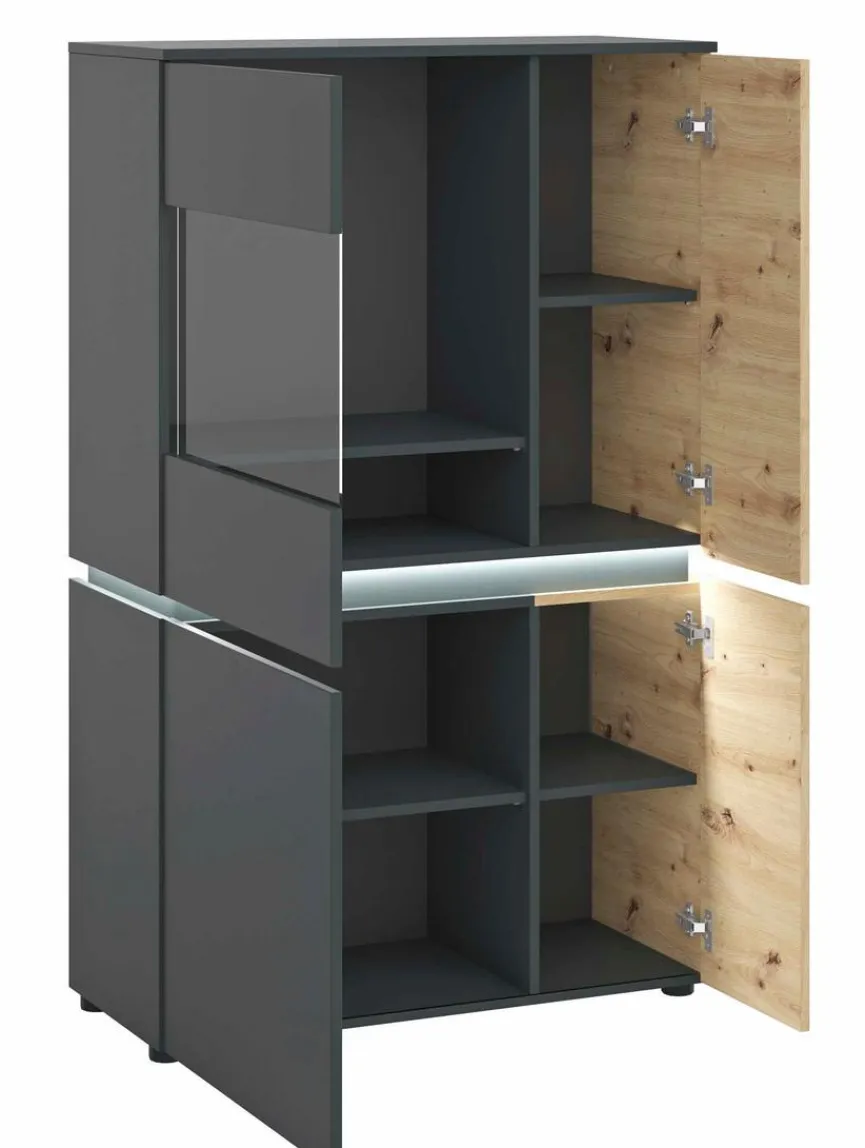 Wenn Sie modernes Ambiente in Ihren vier Wänden bevorzugen, ist die Vitrine Luci von Wójcik genau das Richtige für Sie. Durch die Kombination verschiedener Materialien liegt diese Glasvitrine voll im Trend und zieht sofort alle Blicke auf sich. Freuen Sie sich mit der Vitrine Luci über ein neues Highlight in Ihrem Zuhause.