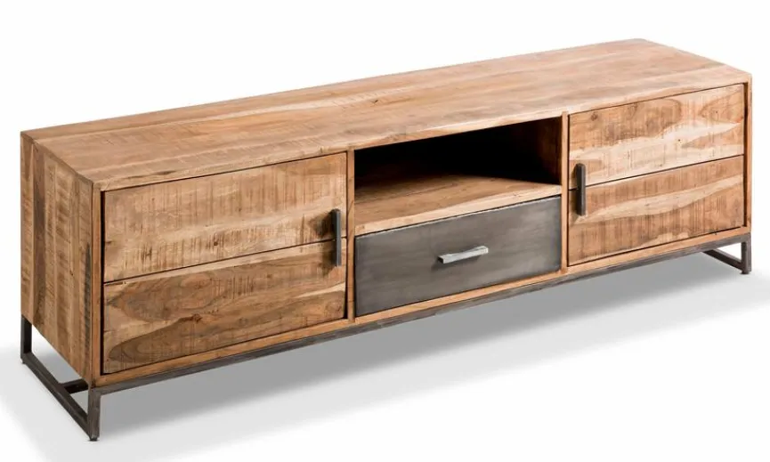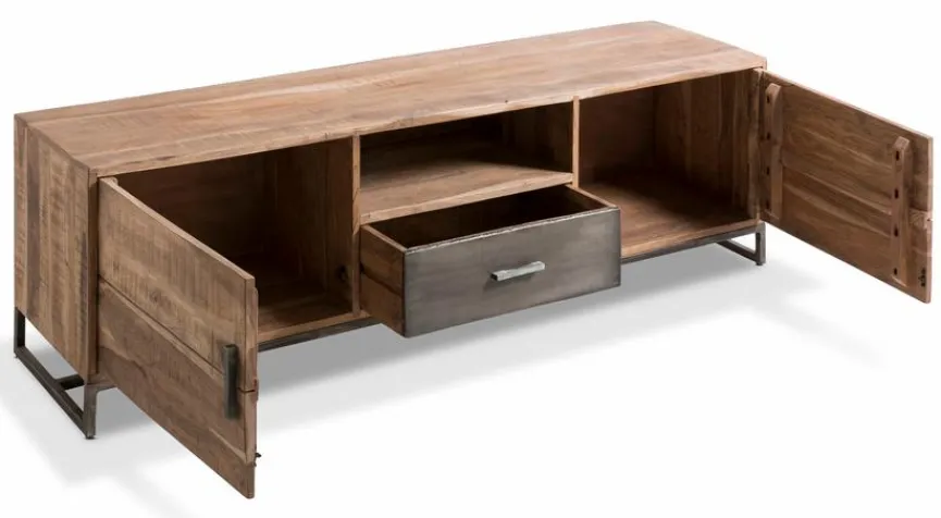 - Aus Akazie in massiv, Gestell und Schublade in Eisen natur