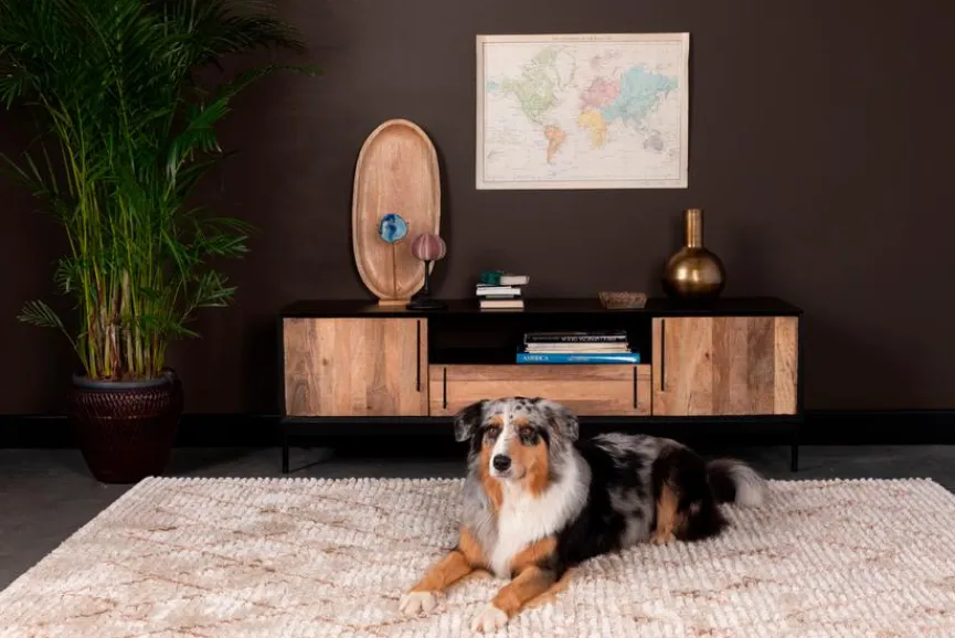 Mit dem Sideboard Nairobi aus dem Hause Zuiver erhalten Sie ein hochwertiges Möbel, das für ein ansprechendes Ambiente in Ihrem Zuhause sorgt. Die Kommode bietet ausreichend Stauraum und eine große Abstellfläche. Darüber hinaus punktet das Sideboard Nairobi von Zuiver mit seinem außergewöhnlichen Materialmix.